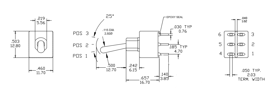 Contact Rating: 6A@125VAC or 28 VDC; 0.4VA max@ 20VAC OR DC max.
