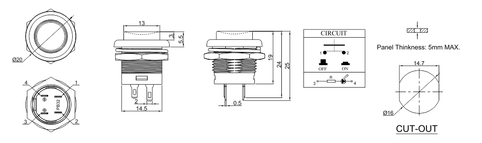 • 帶燈按鈕開關PB32-A-1T-R3-N