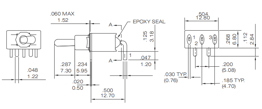 Contact Rating: 6A@125VAC or 28 VDC; 0.4VA max@ 20VAC OR DC max.