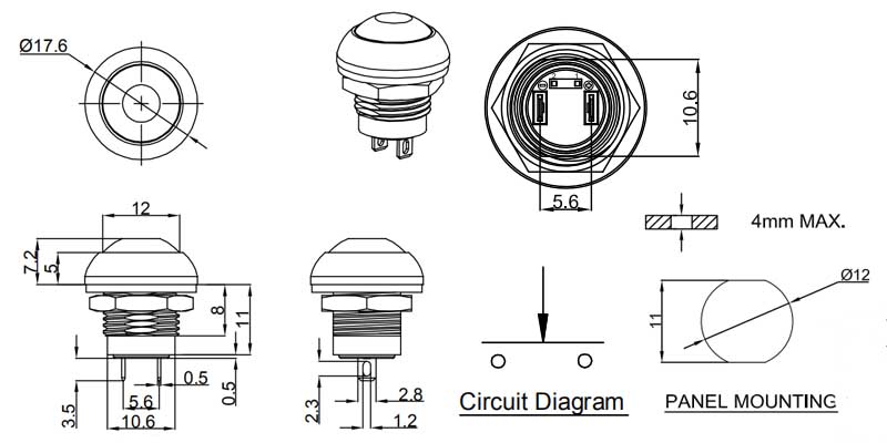 防水按鍵開關(guān)PB12-2-M-RB-N