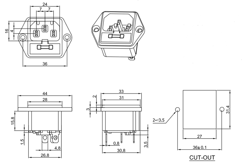 二合一帶保險絲插座S-03F-11