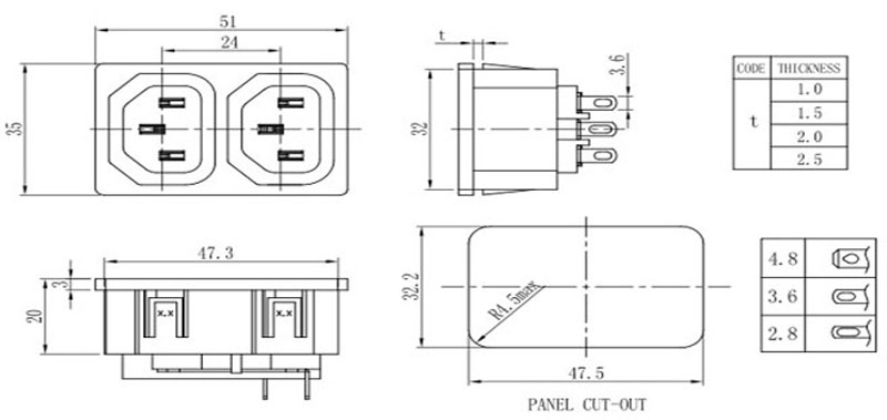 AC電源插座系列,單插、二合一、三合一保險插座等多種規(guī)格,大電流10A ,15A,產(chǎn)品通過UL VDE CCC CB等認證,常見于家用電器,音響功放機等