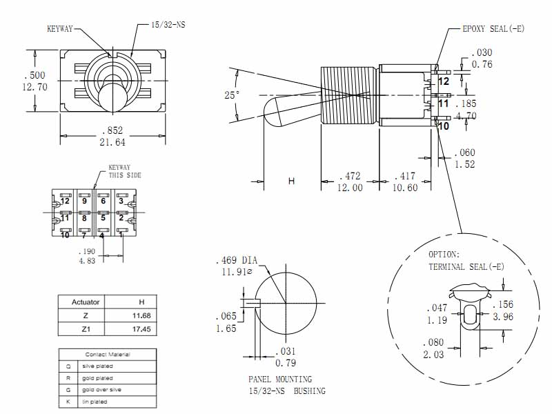 Contact Rating: 5A@125 VAC OR 28 VDC; 0.4VA max@ 20VAC or DC max.
